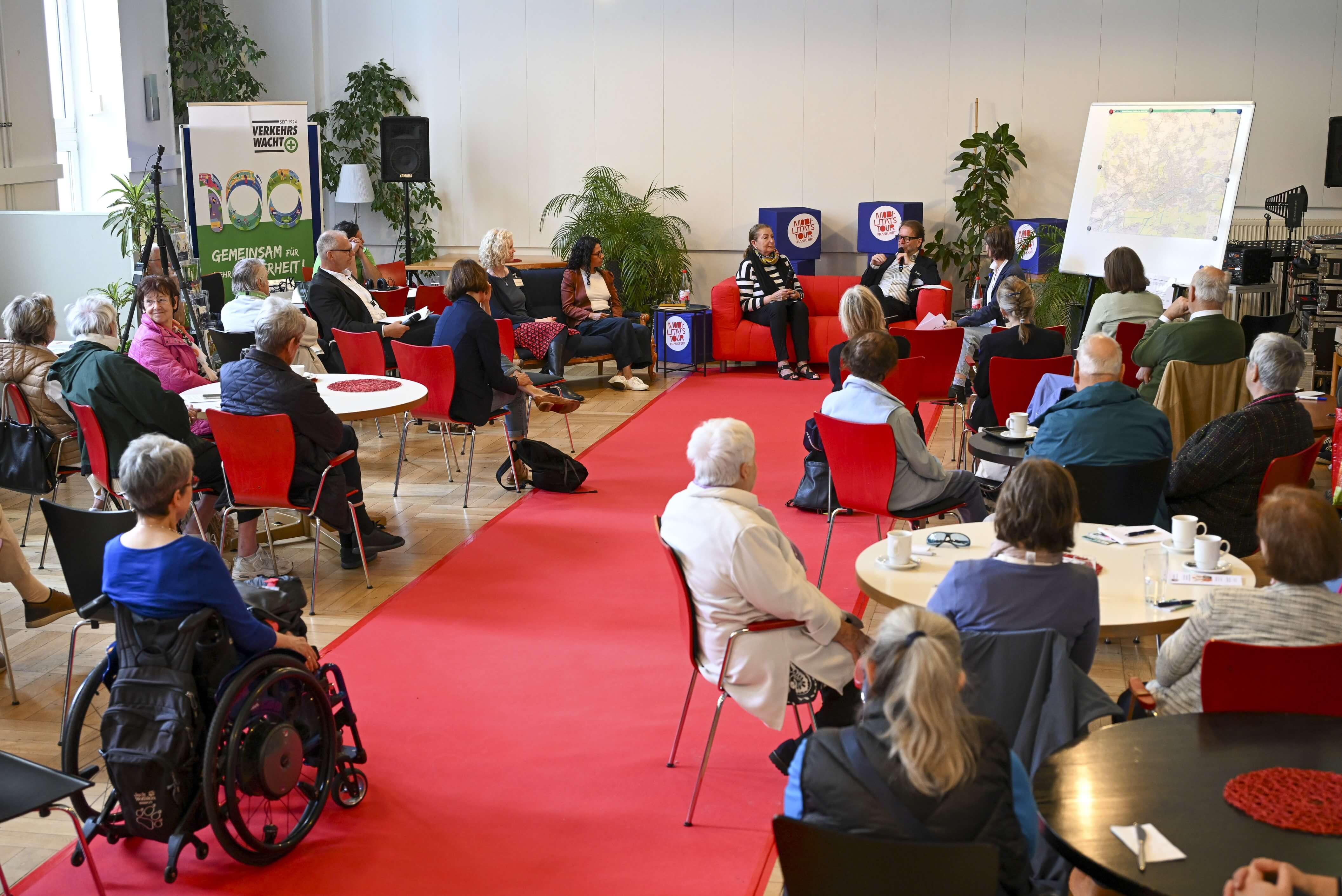 Im Rahmen der Aktionswoche "Älter werden in Frankfurt" ging es auf dem roten Sofa im Gespräch mit dem Mobilitätsdezernenten um Aspekte die Senior:innen bewegen: freie und sichere Geh-, Fußwege sowie Stolperfallen aufgrund unebener Pflasterungen. Beim Mini-Mobilitätsfestival im Osthafen haben Schüler:innen der Klasse 3 bis 8 Fragen gestellt wie: Wo darf ich E-Roller fahren und was passiert, wenn ich mich nicht daran halte? Am Tag der Schiene konnten die Bürger:innen einen Blick hinter die Kulissen der Baustelle zur U5 werfen und sich am roten Sofa über den Ausbau der Schieneninfrastruktur in Frankfurt informieren.
