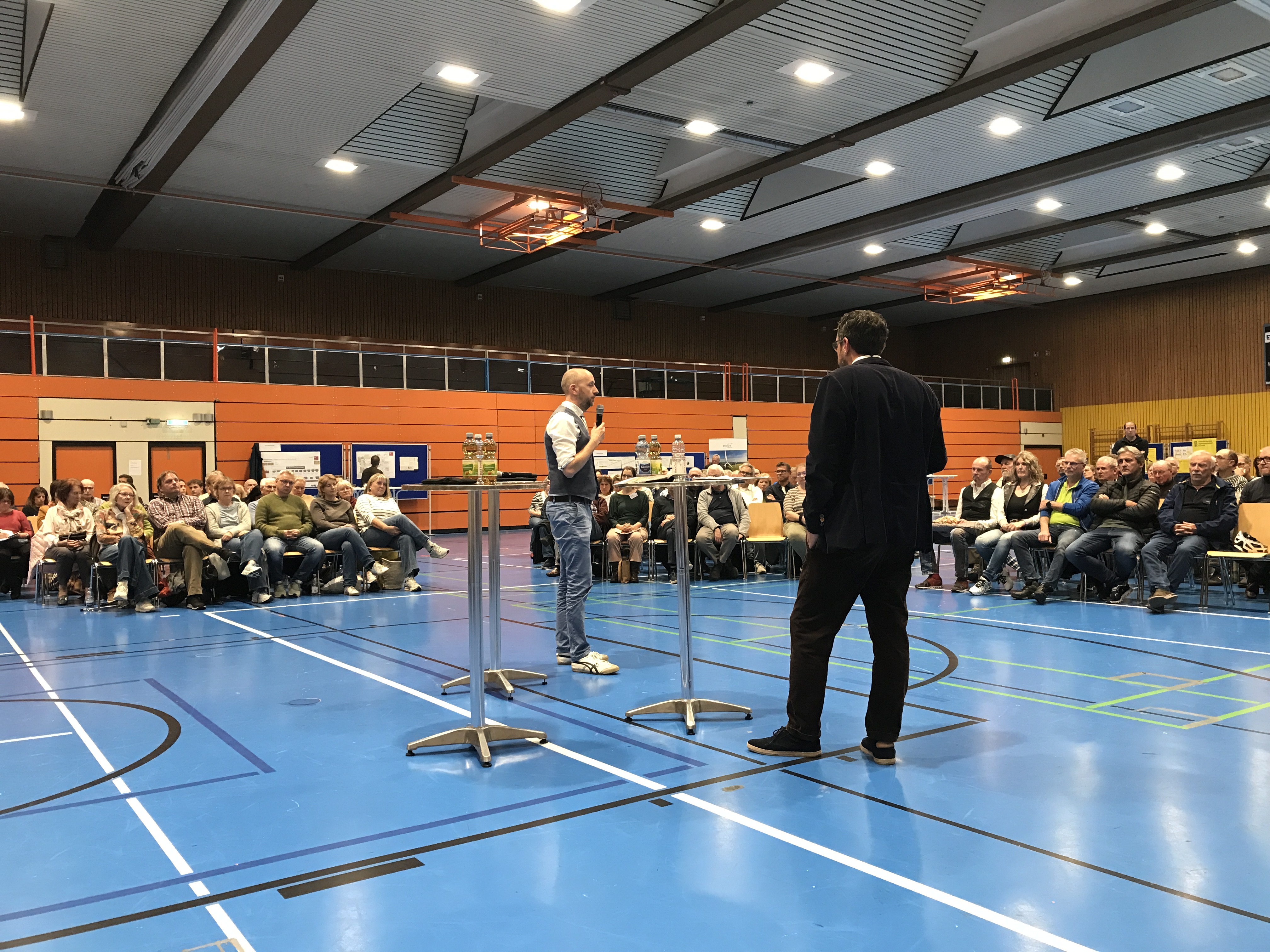 Bei der anschließenden Infoveranstaltungen haben wir bewusst auf ein Podium, Vorträge und Folien verzichtet und eine sachliche Atmosphäre in einem aufgeheiztem Umfeld geschaffen. Das Rhein-Neckar-Fernsehen berichtete in einem kurzen Filmbeitrag.