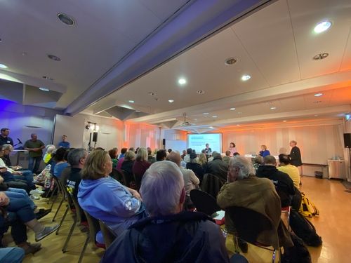 Oberbürgermeisterin Steinruck, Sozialdezernentin Steeg und Baudezernent Thewalt informierten über Bauarbeiten, Sicherheitsvorkehrungen und geplanter Belegung der Unterkunft. Gekommen waren etwa 100 Menschen – die meisten davon direkt Betroffene aus der Bayreuther Straße und Umgebung. Ihre offenen Fragen, Sorgen und Ängste waren Inhalt des Abends. Etwa 40 Personen nutzen die Möglichkeit die Veranstaltung über einen Livestream zu verfolgen.